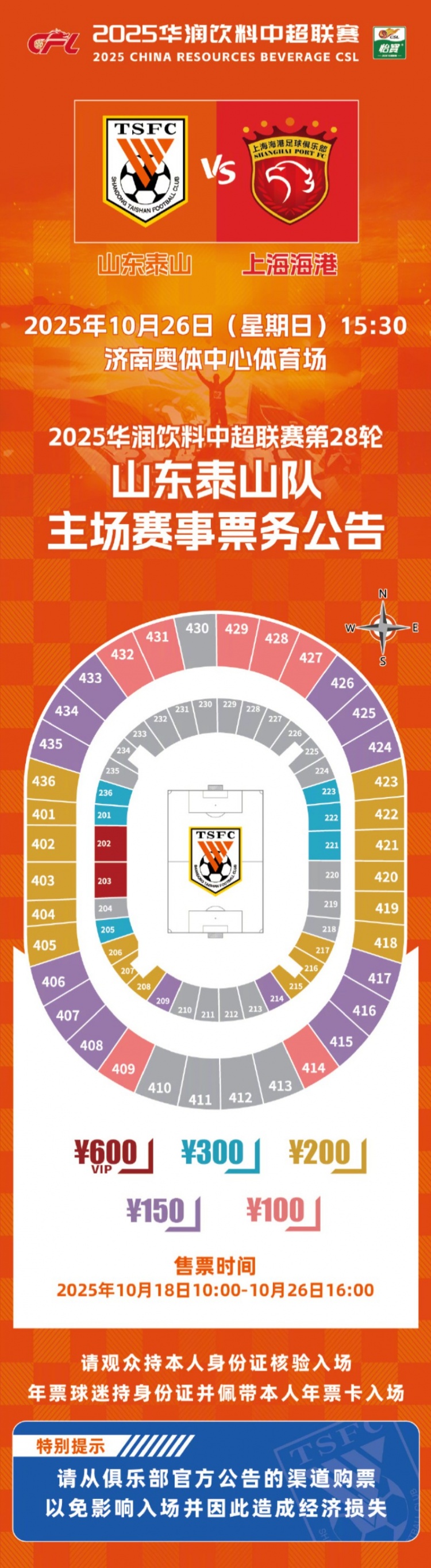 2025中超联赛第28轮山东泰山队主场赛事票务公告