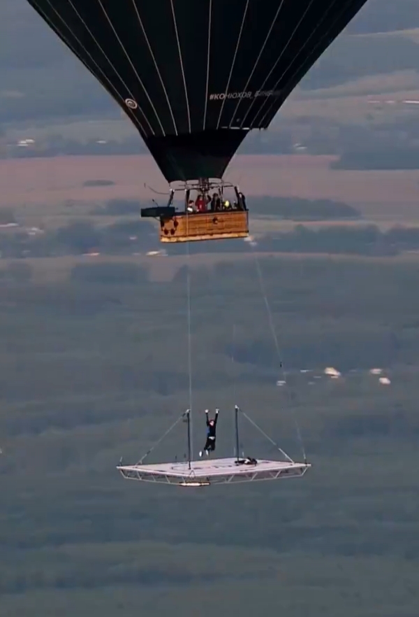 Boytsov时时进行这种关连高空热气球的挑战,之前他还曾在高空挑战单杠。
