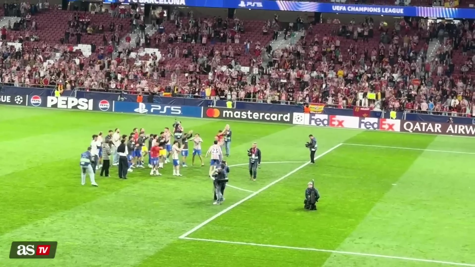 赛事 结束后,马竞球员们先是返回更衣室庆祝,随后在现场球迷的热情呼唤下,重新回到运动活动 场 ,与看台上的支持者们共同分享晋级下一轮 的喜悦。