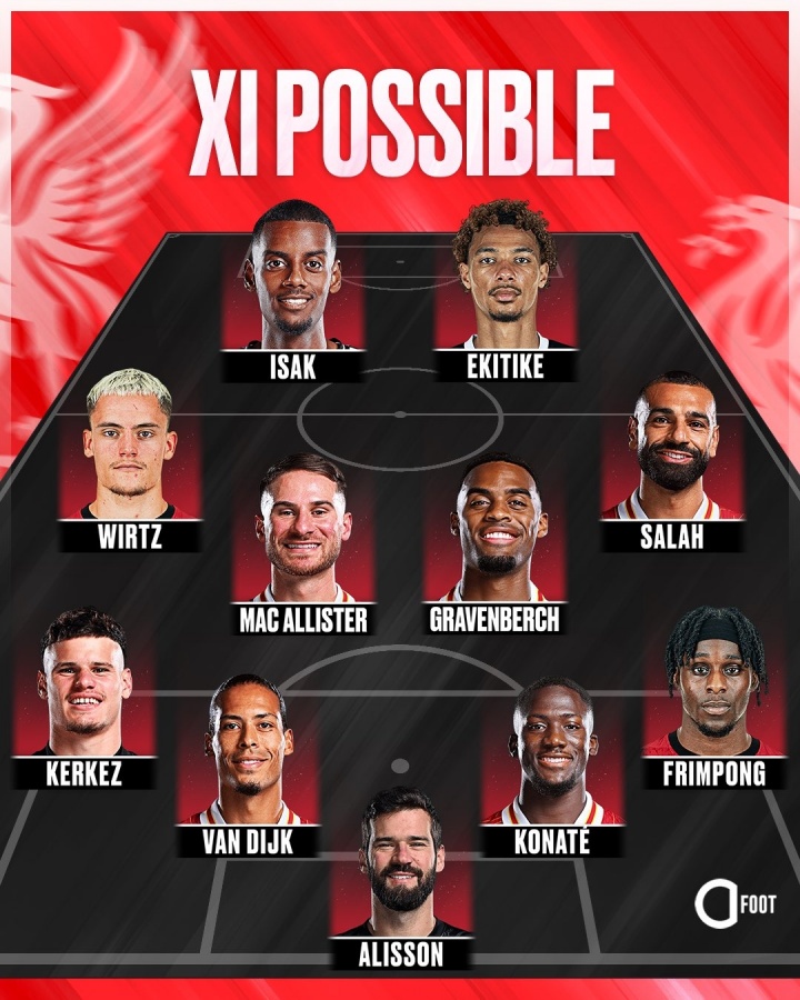 恐怖!外媒预计利物浦首发:伊萨克+埃基蒂克 维尔茨、萨拉赫在列