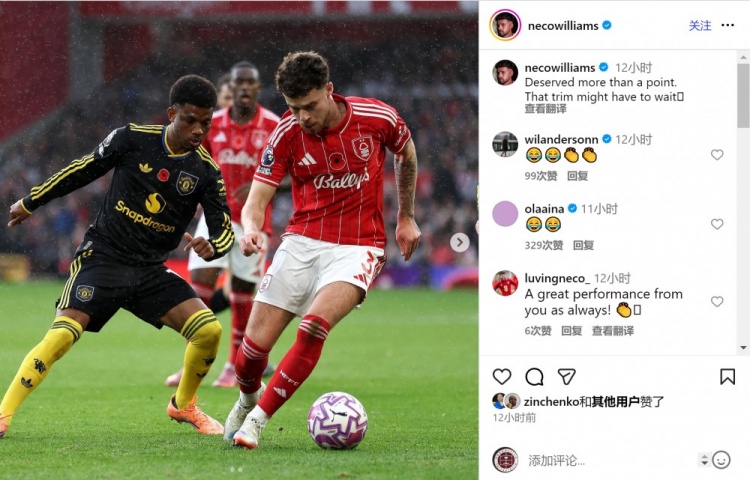 11月2日讯 英超第10轮比赛,内科-威廉姆斯踢满全场,匡助诺丁汉丛林主场2-2战平曼联。