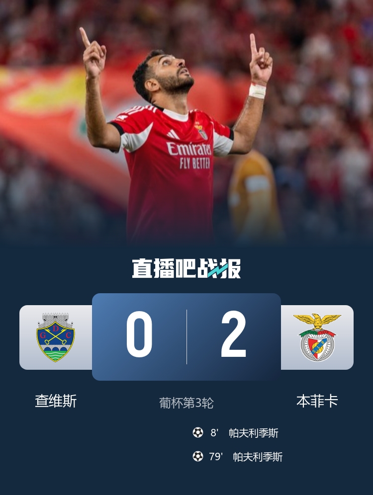 葡杯-本菲卡2-0查维斯晋级 帕夫利季斯宇宙波+双响苏达科夫献助攻