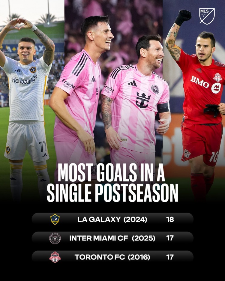 据好意思职联官方统计,迈阿密外洋本赛季好意思职联5场季后赛打进17球,好意思职联历史单届季后赛进球并排第二多,差1球追平洛杉矶星河保执的记载。