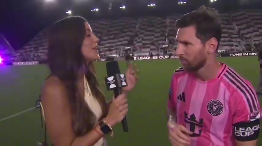 08月28日讯 定约杯半决赛,梅西梅开二度,迈阿密外洋淘汰奥兰多城晋级决赛。赛后梅西收受了现场apple tv记者Antonella González的采访。