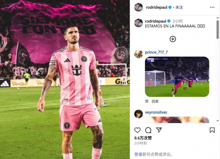 首发助迈阿密外洋逆转取胜,德保罗发文庆祝:咱们晋级决赛