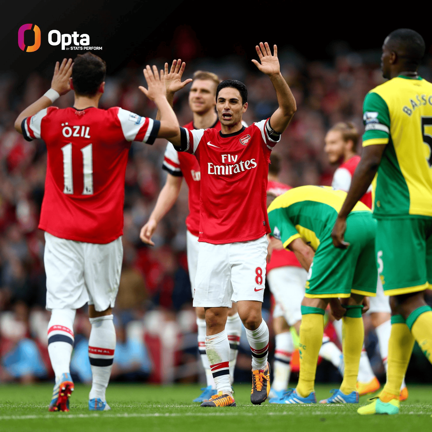 凭据数据网站Opta的统计,阿森纳队史逆转取胜的英超比赛中,本场梅里诺的扳平进球是第二晚的——最晚的扳平进球则来自2013年4月球队对阵诺维奇的比赛。