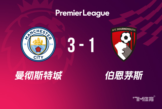 英超-曼城3-1伯恩茅斯距榜首6分 哈兰德单刀双响