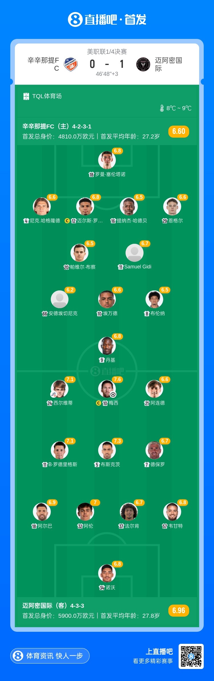 11月24日讯 北京时候6:00,好意思职联1/4决赛辛辛那提FCvs迈阿密外洋。上半场,梅西头球破门!西尔维蒂献助攻。半场收尾,迈阿密外洋暂时1-0荒芜辛辛那提FC。