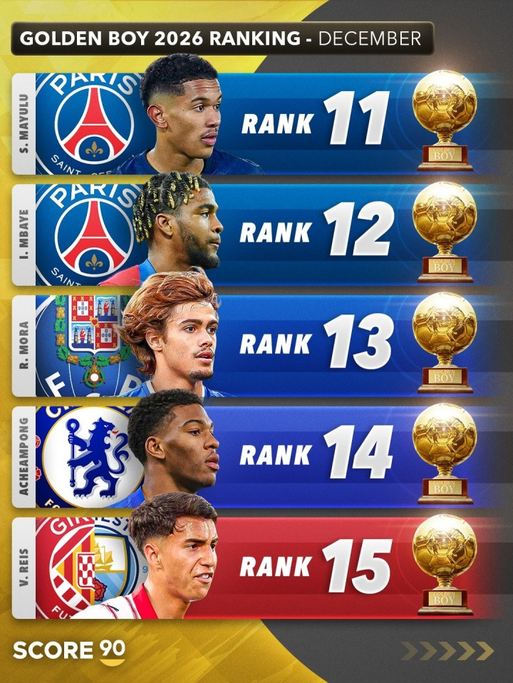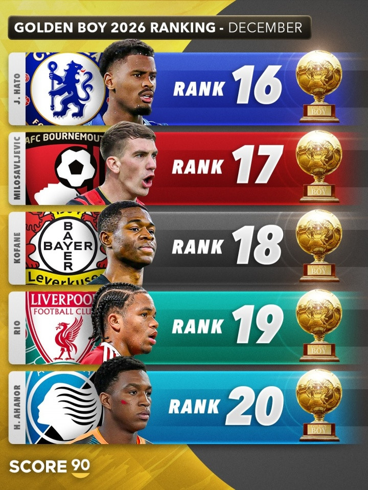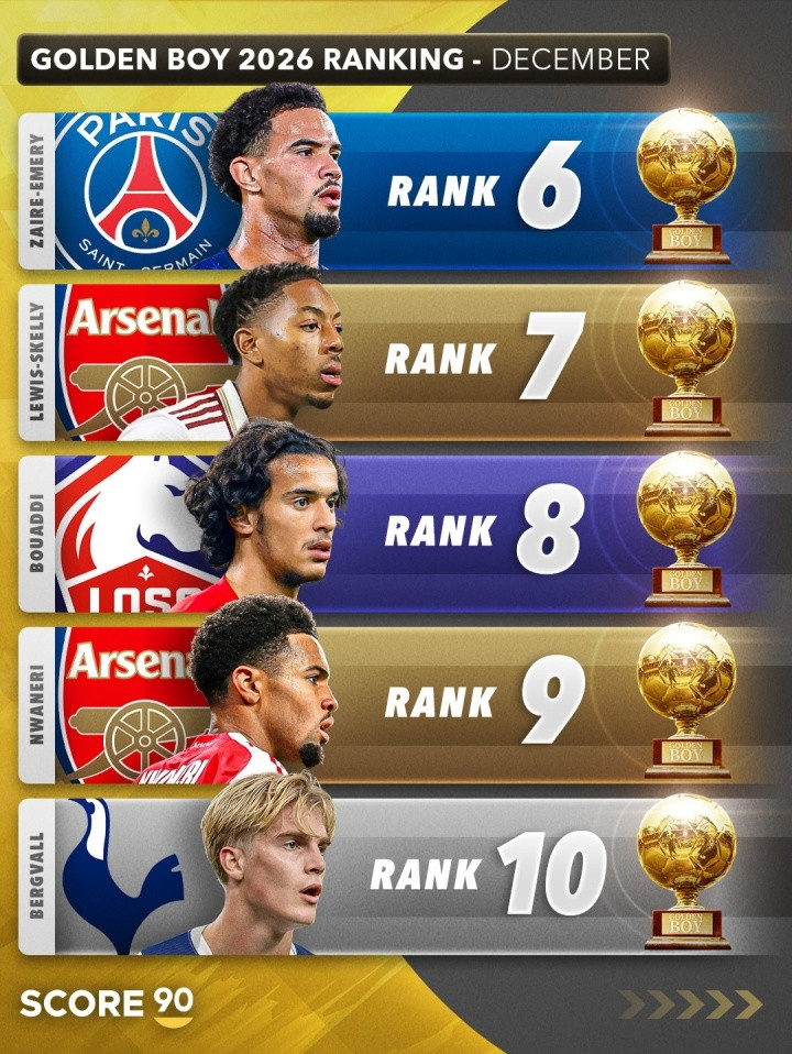 直播吧12月04日讯Score90列出了2026年金童名次推测,埃斯特旺居首,库巴西、卡尔分列二三。