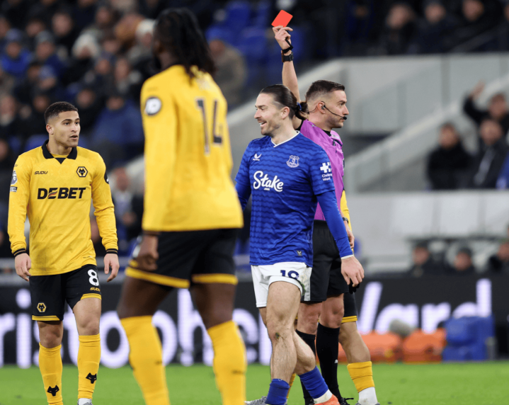 埃弗顿1-1狼队, 迈克尔-基恩、格拉利什先后染红