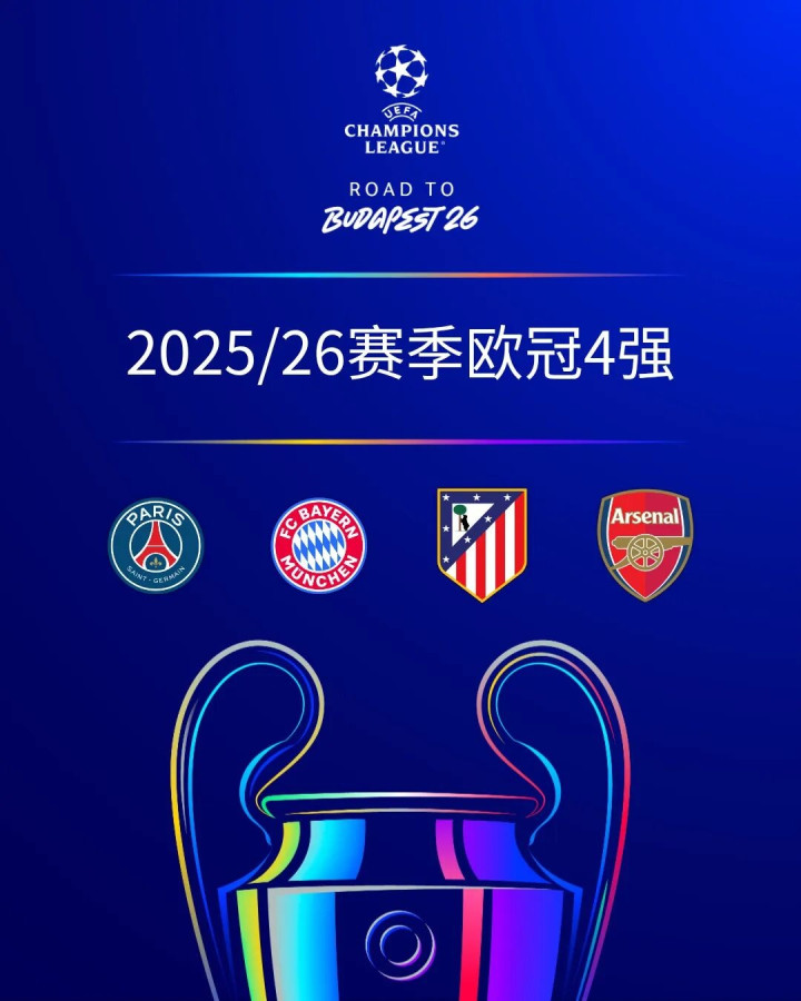 欧冠4强出炉: 拜仁慕尼黑、阿森纳、巴黎圣日耳曼、马德里竞赛