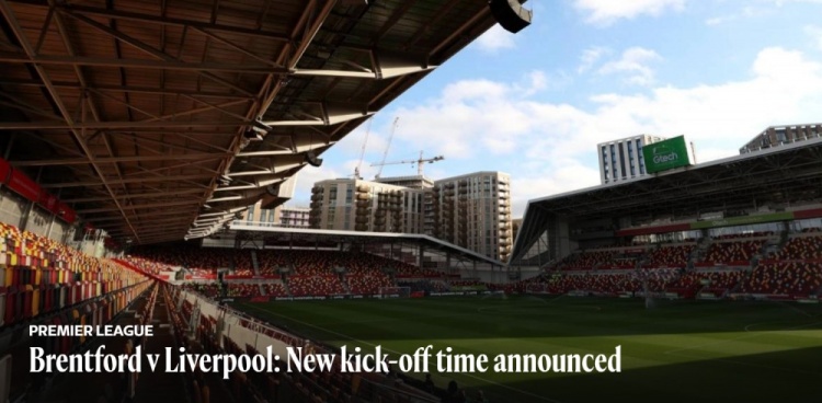 利物浦官方:欧冠赛程公布后,客战布伦特福德延后7个半小时开球