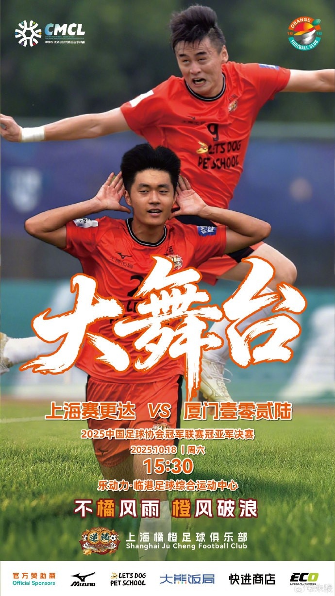 10月18日讯 中冠冠亚军争夺战首回合,上海橘橙将对阵厦门壹零贰陆。
