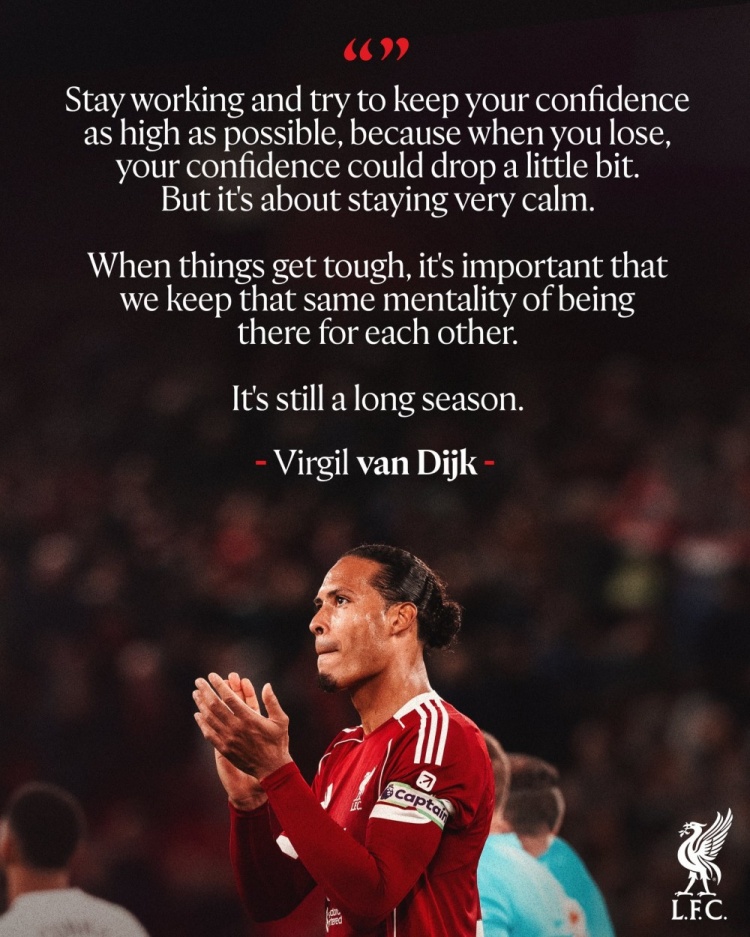 范戴克谈双红会失利:咱们要保握平缓相互扶握,赛季还很漫长