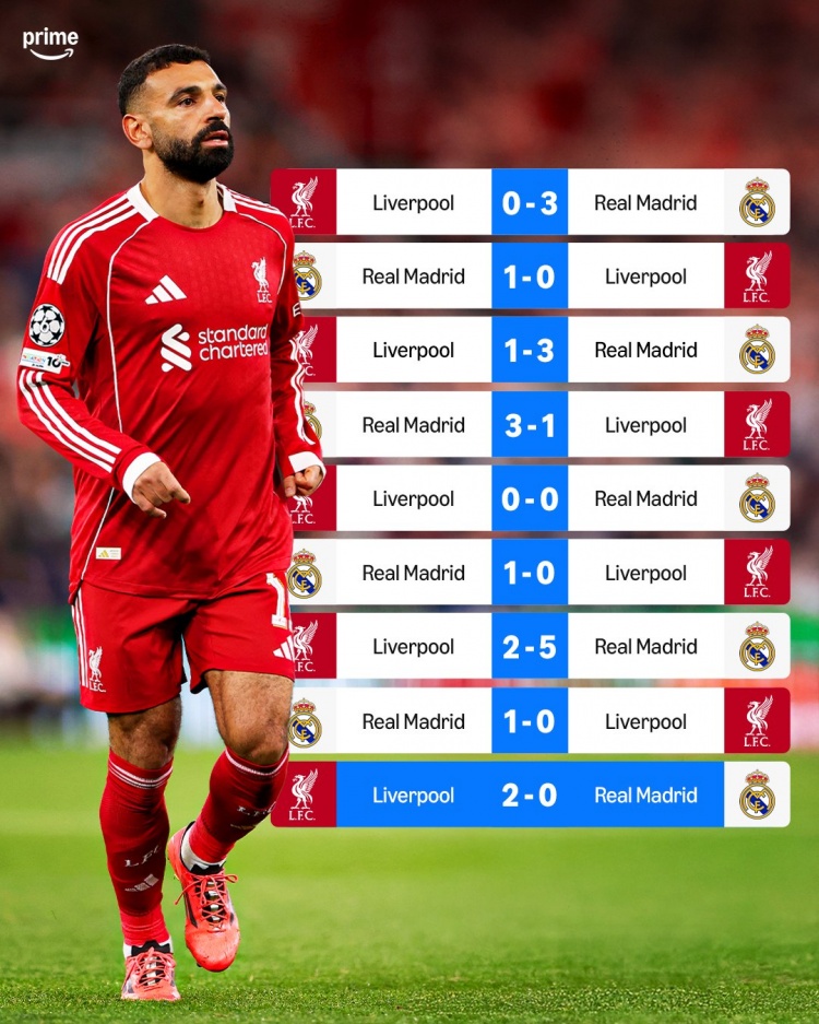 此次怎么?利物浦近9次对阵皇马1胜1平7负,打进6球丢17球