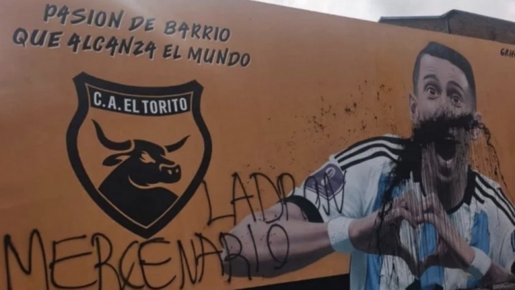 11月22日讯 据阿根廷媒体tycsports报谈,迪马利亚在罗萨里奥的一副壁画被东谈主为羁系,还写上了“小偷,雇佣兵”等词语。